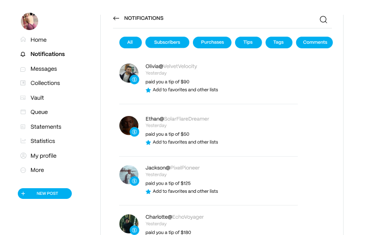We’re all about turning your content into real income. From pricing strategies to pay-per-view, tips, bundles, and beyond—we help you make smarter moves that boost your revenue without burning you out. You focus on creating, we’ll focus on maximizing your results.
